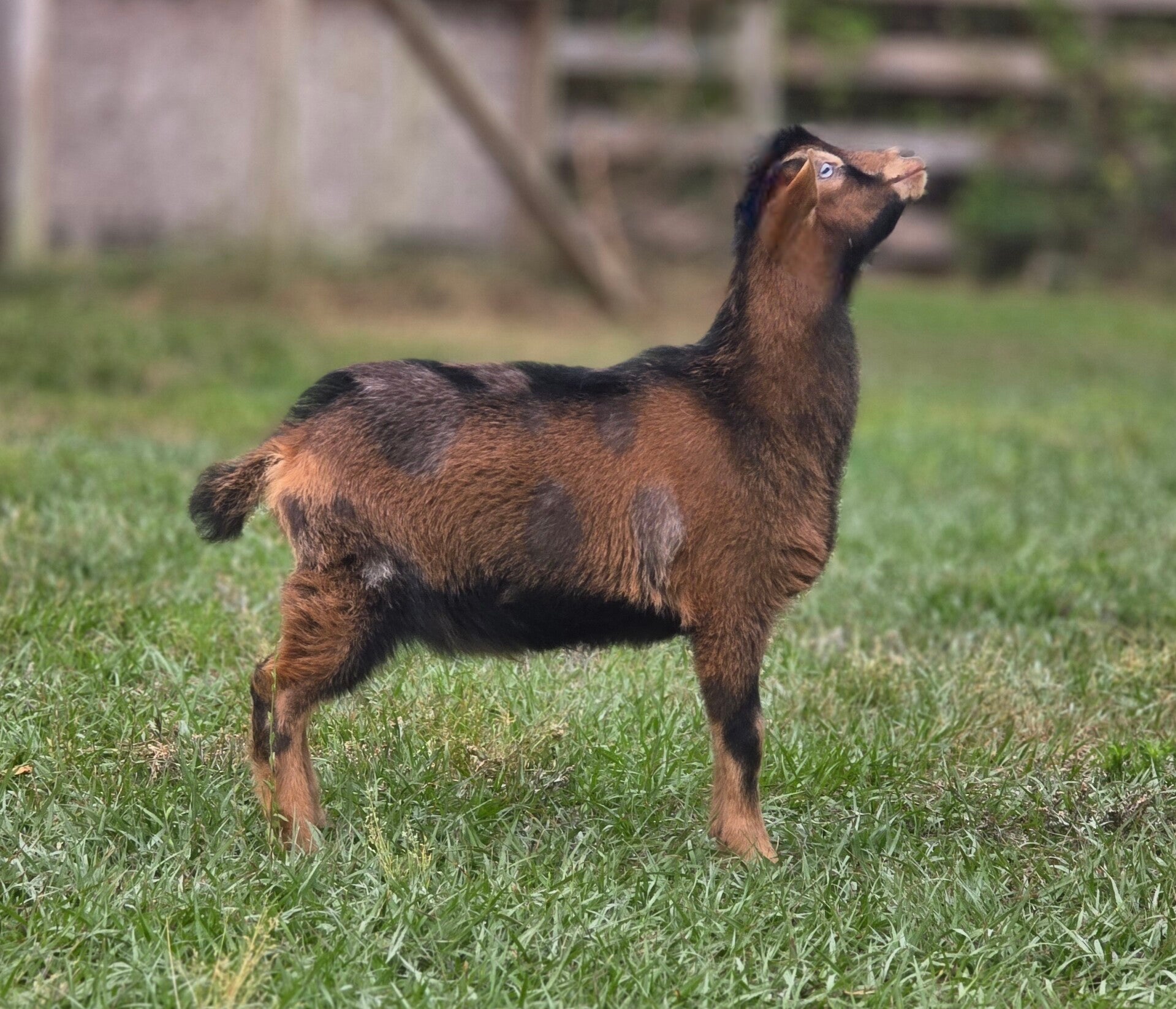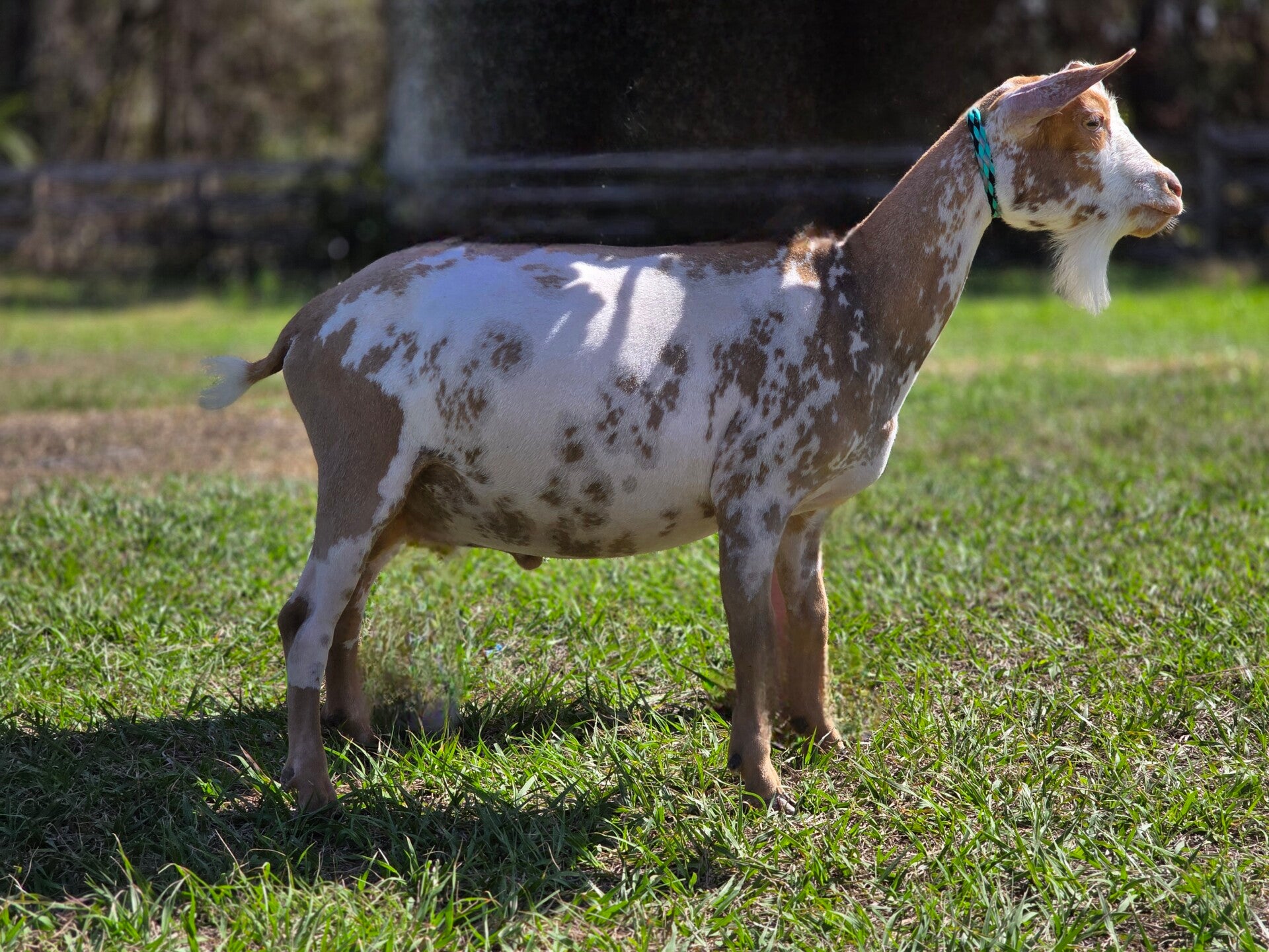 By this point your probably wondering if we have a problem....a buck hoarder problem. Why yes, yes we do. But this one is special. He is a Johnny Kid and we can't wait to see what he brings to our herd. With his Sire's Dam scoring an EEEE92 and Elite Genetics on both sides of this guy, he is going to bring beautiful structure and dairyness, as well as overall appearance to his offspring. Be on the lookout for 2027 kids from this stud.